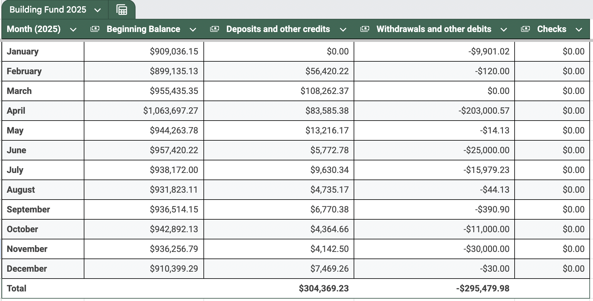 - New project bank account balance: $1,018,534.41